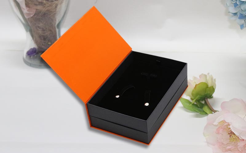 1.材質: 盒子面紙採用157G銅版紙專色印刷,LOGO文字燙黑金,雙層的盒子用黑色特種紙裱1300G雙灰闆,内托用黑色植絨的EVA固定産品。整款盒子都是手工制作。