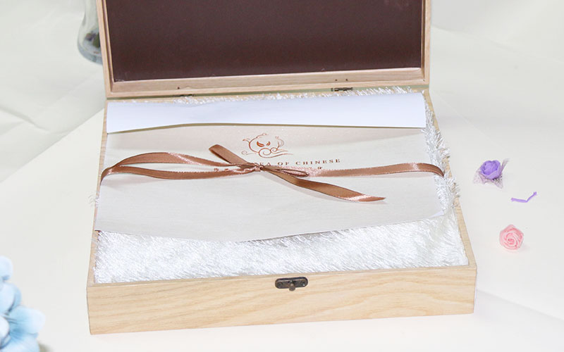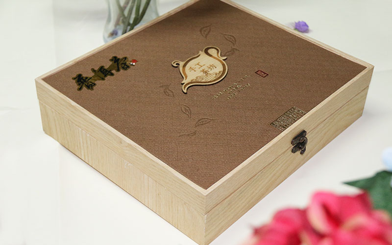 1.材質 :茶葉包裝盒定制盒子中心用特種紙熱壓紋路,無印刷,直接燙金産品名字激凸,标志燙紅金,地址信息燙黃金,盒子正中心貼一個産品代表圖案,盒子外框制作5MM厚度的木質材料.盒子内部結構上盒貼特種紙燙金文字 ,下盒内托0.5MM厚度上面鋪上進口高檔寶白色絨布,絨布上面放一張白色特種紙文字燙金,蓋一層紙能讓産品更有一種神秘感。盒型爲翻蓋盒,盒子的翻蓋地方上一個自動的小鎖扣,顯得更加漂亮精緻整款盒子手工制作精細,紙張和木質結合更加環保。