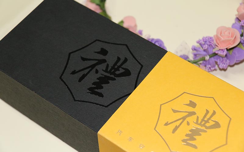 1.材質:禮品包裝盒定制外盒封套採用黃色特種紙表面燙啞金,外盒採用180G特種進口黑色牛卡紙(上面自帶小細紋路),盒子不用印刷彩色 ,盒子表面局部UV,文字燙啞金,盒子爲天地盒,盒子内部放拉斯草黑色拉斯草更顯高檔 。