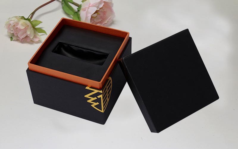 1.材質:黑色特種紙盒子大LOGO燙黃金擊凸裱1500G雙灰闆,盒子内圍條用金色萊利紋,盒子内托底部珍珠棉上面灰闆裱黑色綢布,開模型V槽。手工制作成品出貨。