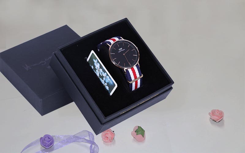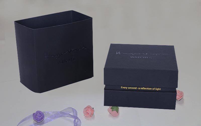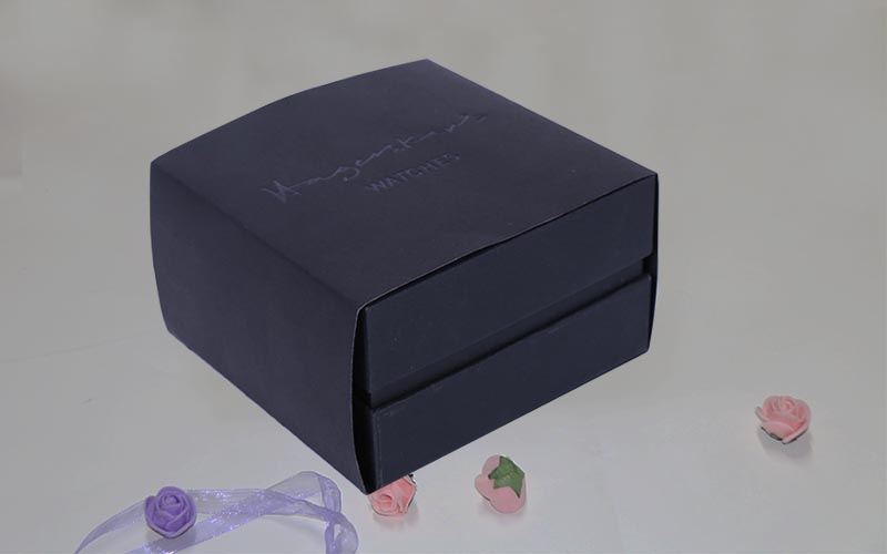 1.手表包裝盒定制-材質 :盒子表面採用高仿皮質特種紙裱1800G雙面白雙灰闆,表面燙金或者是擊凸文字LOGO,盒内内托採用EVA和珍珠棉這是最常見的,需要更高端的内托可以用植絨或者是絨布都可以,盒型爲翻蓋盒和抽屜盒,手表比較高檔盒子制作精細