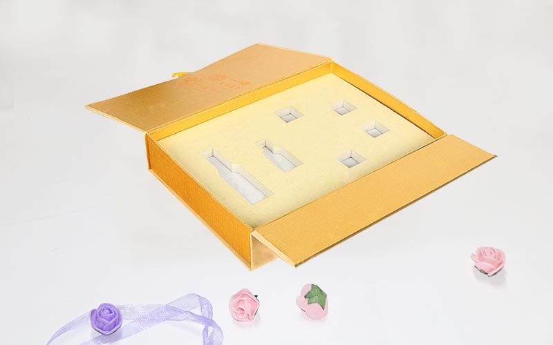 1.高端護膚品包裝盒定制-材質:包裝盒面紙採用麗紋特種紙,裱1600G雙灰闆,盒子是空白的,客戶要放文字LOGO都可以定制的,文字可以燙金擊凸 ,盒型是比較特殊的,這種盒子採用全套手工制作