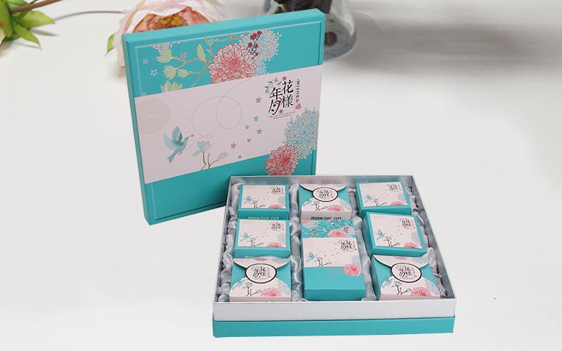 1. 材質:月餅(bǐng)包裝盒定制盒子面紙採(cǎi)用金銀卡紙或者是銅版紙,表面四色印刷過光膜裱1600G雙灰闆,内盒結構用350-400G單粉卡紙專色印刷手折盒成型即可,内托部分客戶喜歡用紙質内托,高檔的可以用綢布,整款包裝盒都是手工制作