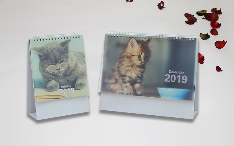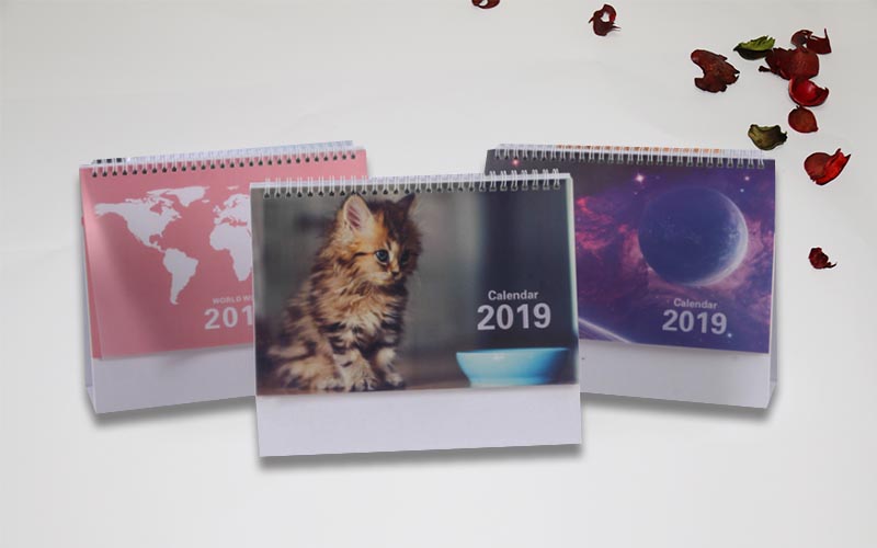 1.材質:整本台曆都可以用一樣的材質,這幾本台曆用啞粉紙彩色印刷,都是13張,封面單獨做可以燙金,VU,擊凸,壓紋等不同的工藝。台曆支架特種紙燙金文字LOGO裱1500G雙灰闆 ,用不同顔色的YO圈裝訂制作成品。
