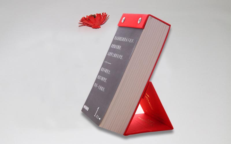 1.材質:此款台曆支架用不同的特種紙,表面彩色印刷+燙金燙銀+UV擊凸等不同的工藝,裱1500G雙灰闆,内頁用80G雙膠紙雙面彩色印刷,整本台曆頁數比較多,都是要手工制作,如果要更固定底部可以加活動的螺絲扣。
